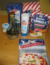 mette gli ingredienti: la farina, il lievito, l'acqua e il