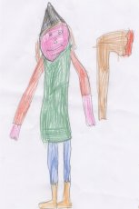 con un nastro. Il cappello è lungo e appuntito con
