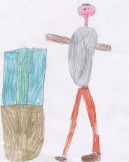 gambe sono rosse e sottili. Infine le scarpe sono